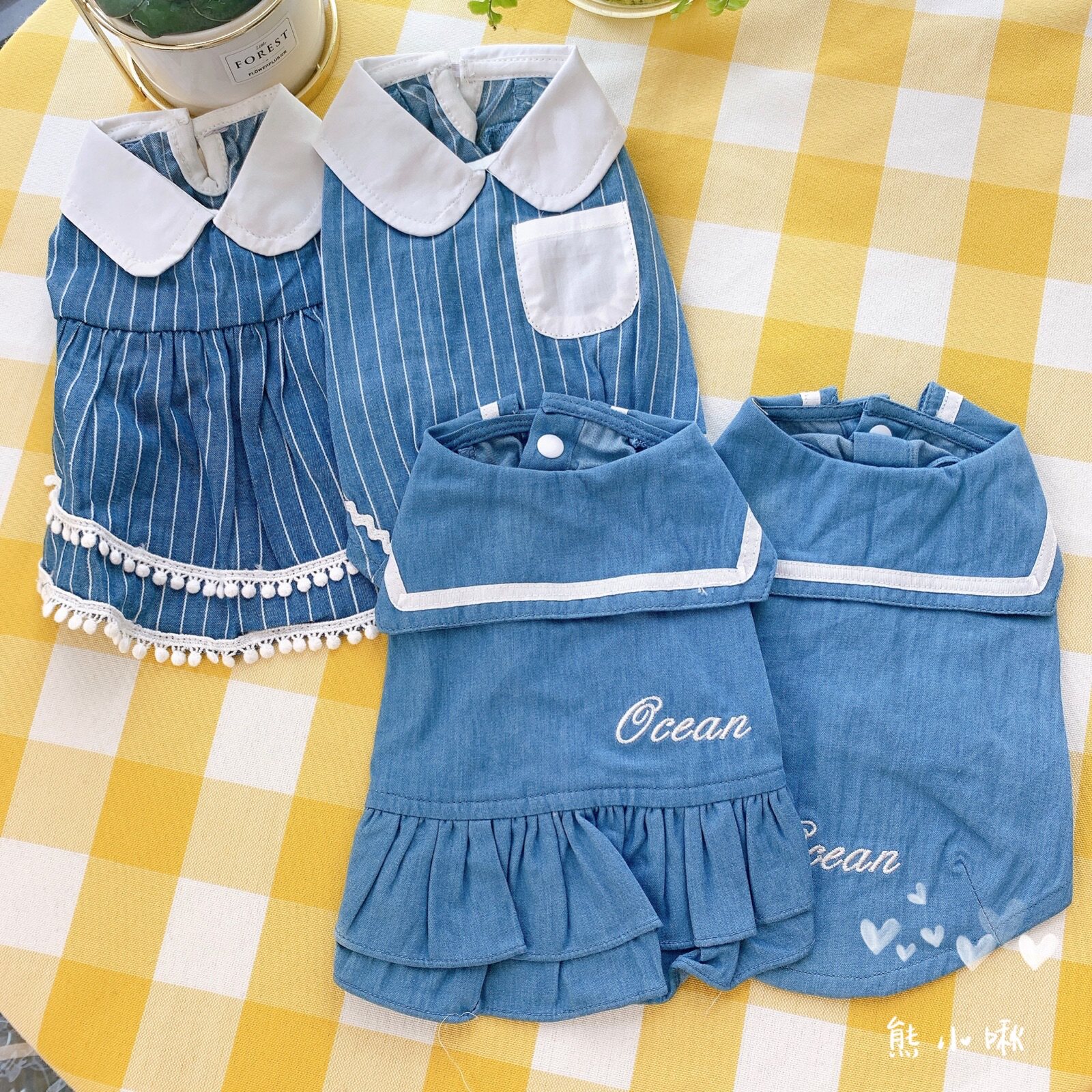 Lapel denim doll skirt pet cat dog dress skirt VIP Teddy YorkShire bi bear Bomei bear chirp
