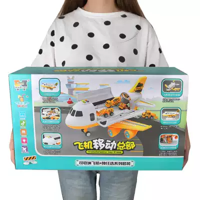 Train Mobile Headquarters (with 6 alloy engineering vehicles) Music story lights can store super large passenger aircraft with 6 alloy fire engines (music story lights) can accommodate super large passenger planes with 6 in