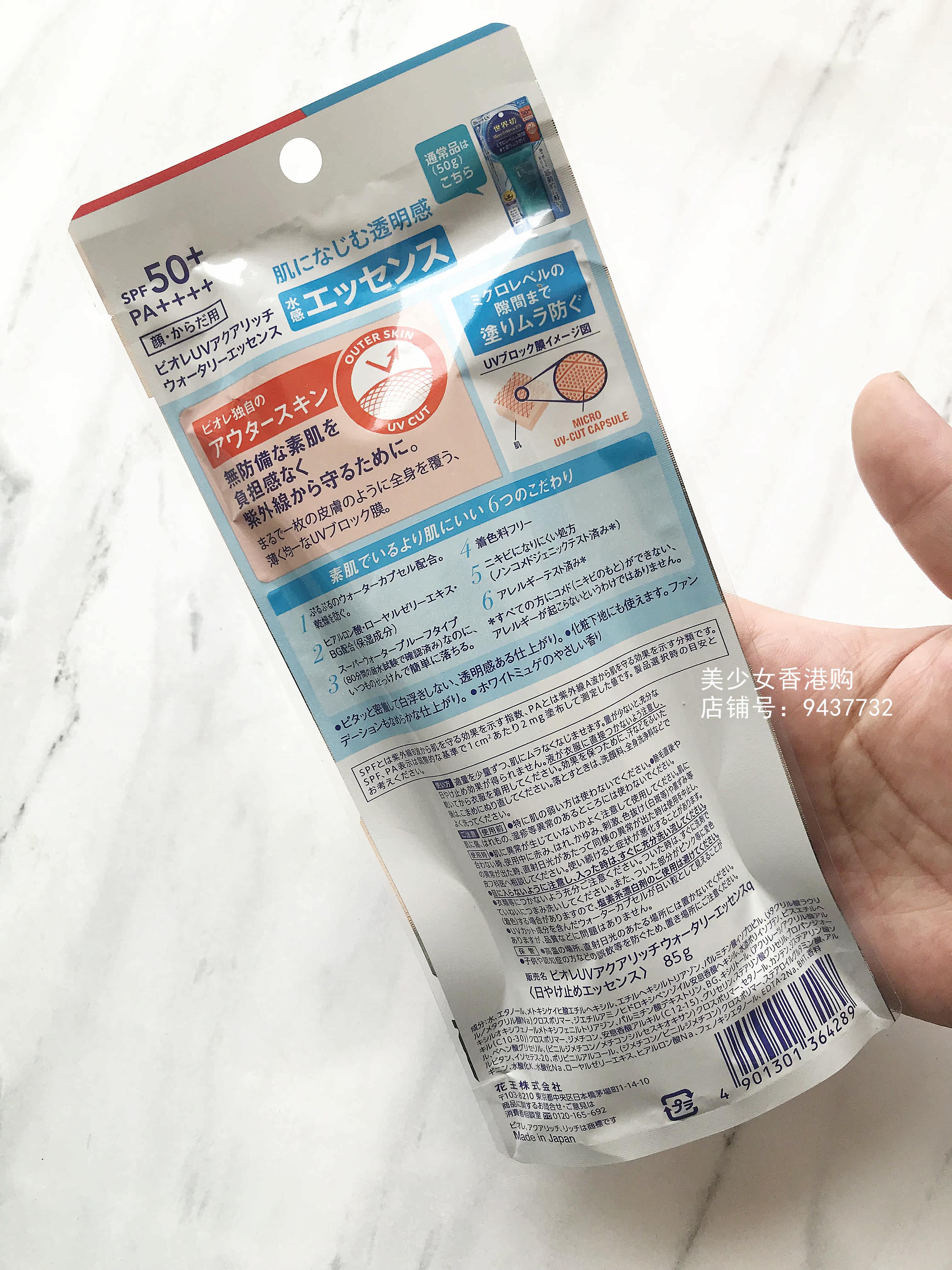 The new version of Japan's Biore water-sensing sunscreen cream SPF50 1 7 times limited edition increment 85g