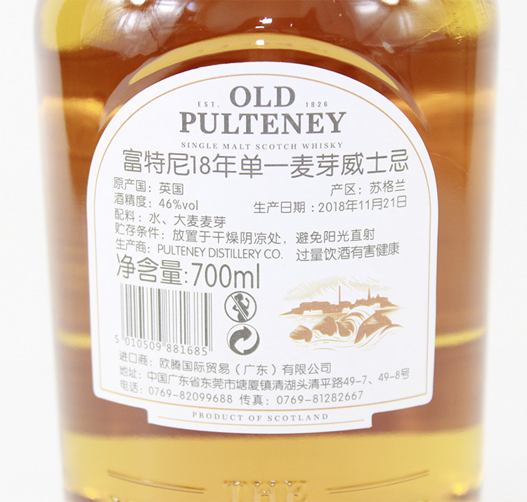Scottish OLD PULTENEY Fortney old Fortney 18 years single malt whisky
