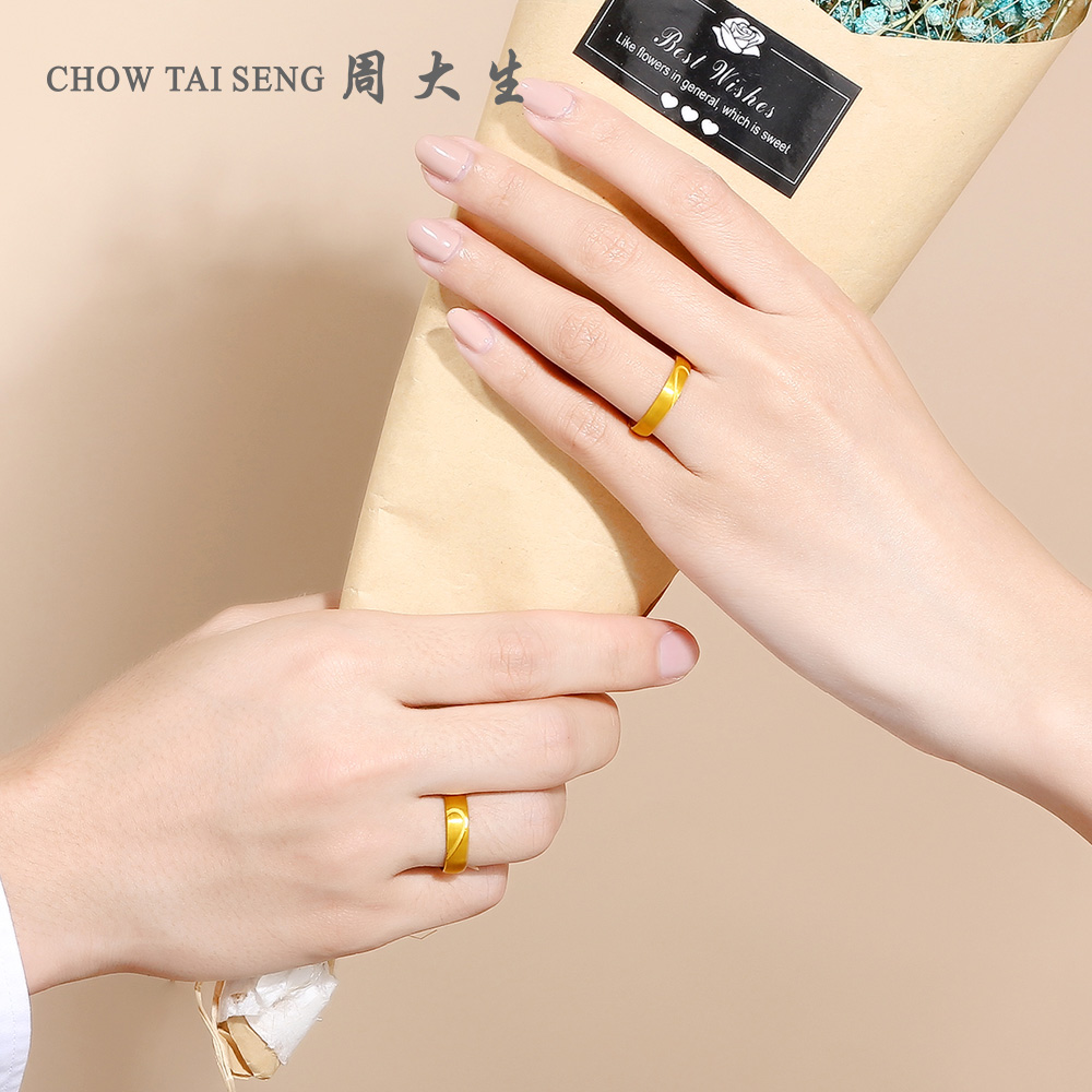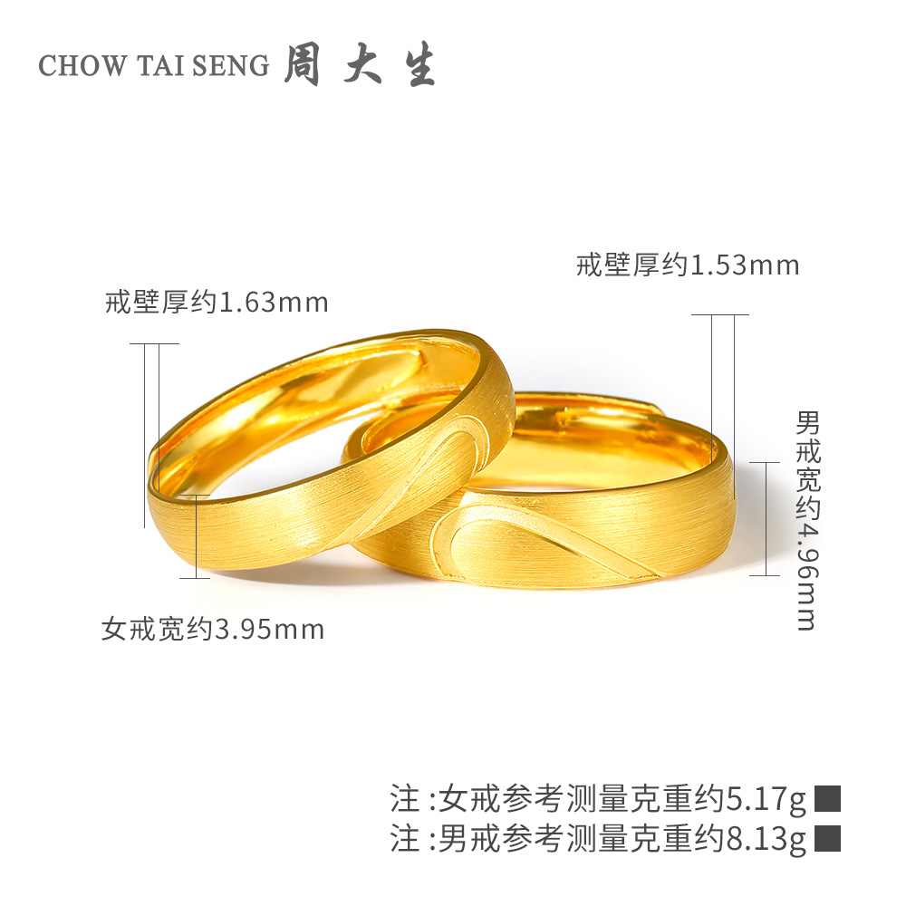 Zhou Dasheng solid gold ring men's couple's pair ring a pair of women's 999 pure gold live mouth wedding ring