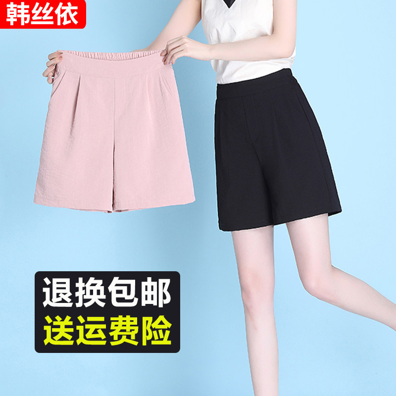 Shorts women's summer thin section 2022 new women's wide-leg casual pants cotton and linen women's pants ice silk five-point pants women's summer