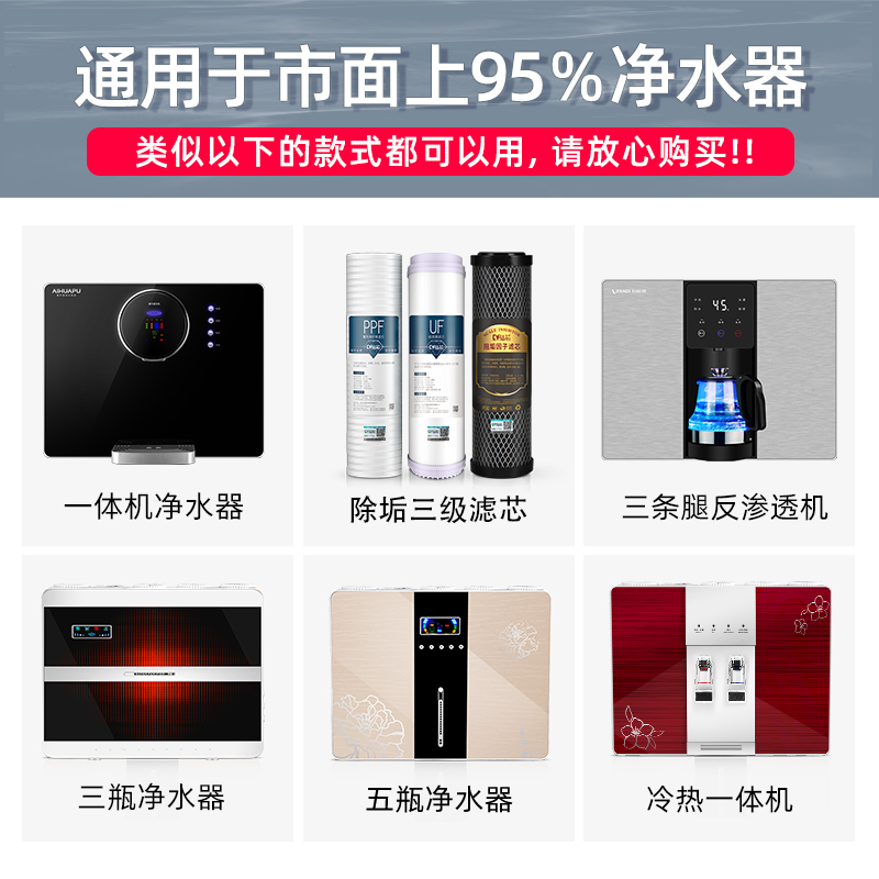 Three-stage water purifier 10 inch PP cotton particle carbon descaling water alkali descaling residual chlorine antiscaling filter set universal