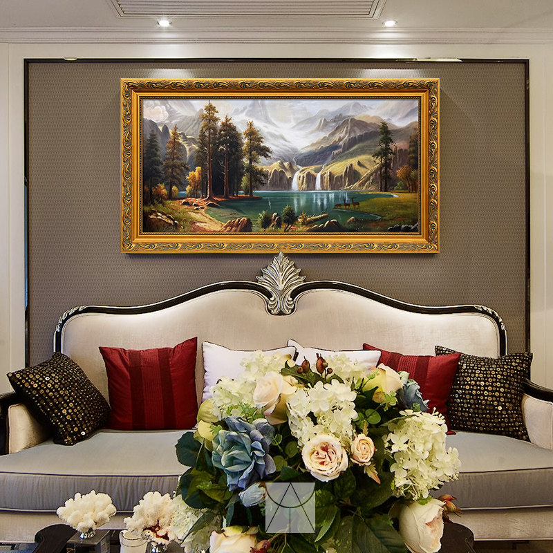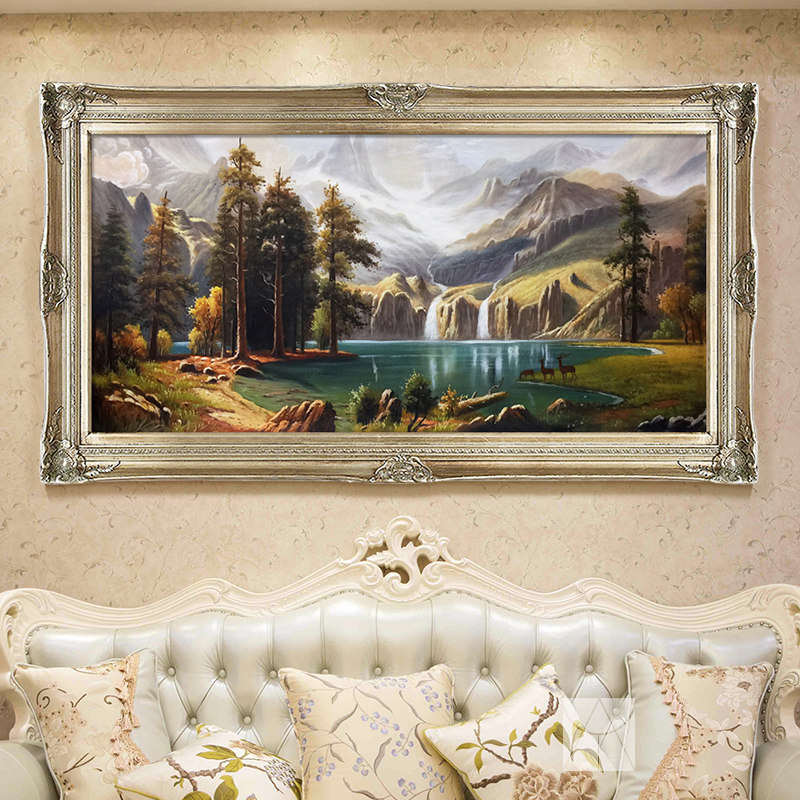 Art Master's Eurostyle Living Room Pure Hand-painted Oil Painting American Landscape Scenery Hang Painting Xuanguan Mural Deer Follle Polyppot
