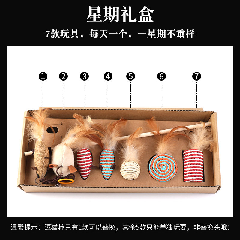 Seven sets of kitty toys self-Hi teasing cat toy Cat Toy Sets Mice Feather Infant Cat Grinding Cat Cat Supplies