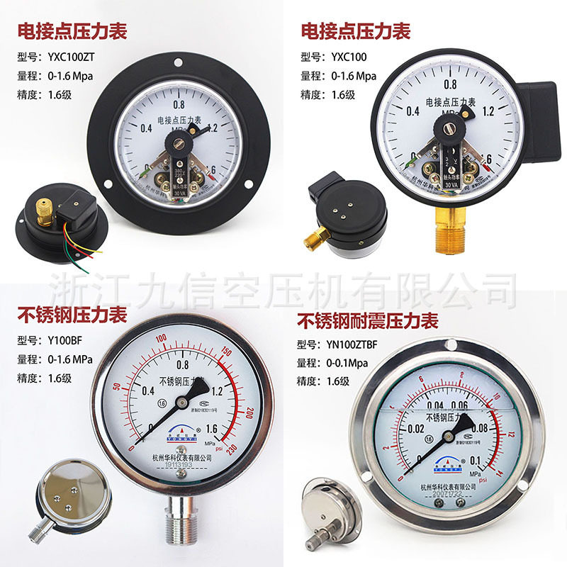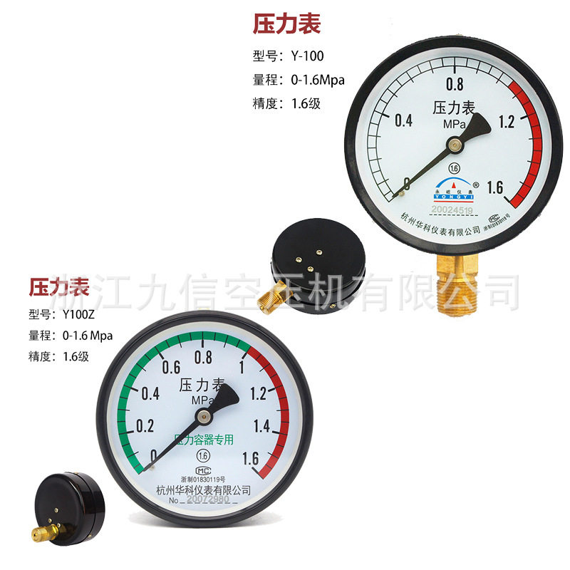 Pressure gauge Y100ZBFNZ gas storage tank axial Hangzhou Fuyang Huake instrument 1 6Mpa2 51 0 stainless steel