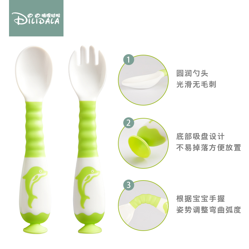 Baby Training Eat Spoon Baby Boy Deputy Food Elbow Crooked to Eat With Suction Cup Bent Soft Tablespoon Fork Cutlery