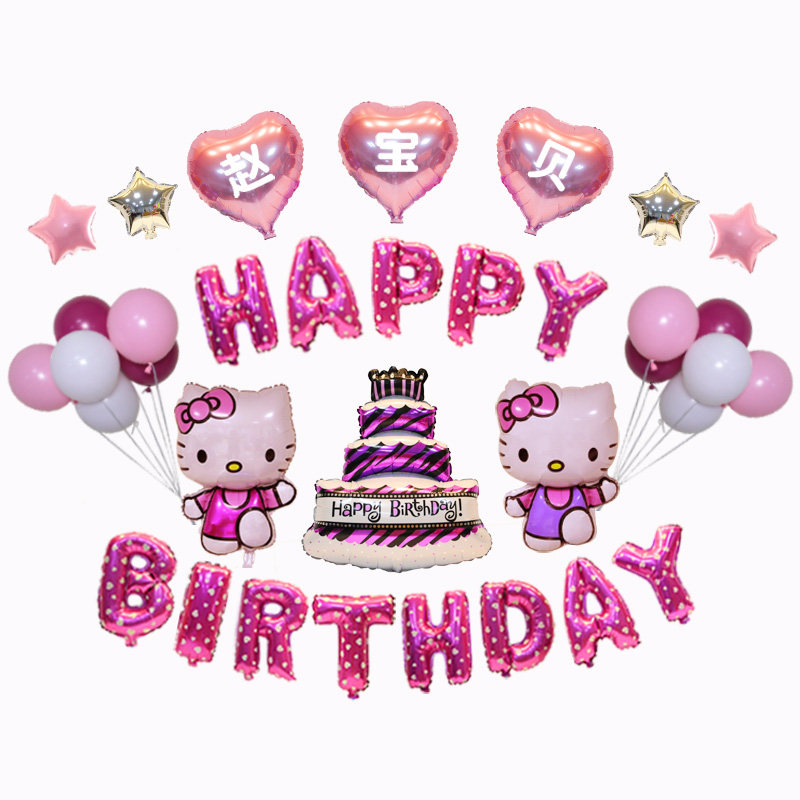 KT Cat Girl Baby's Birthday Wall Scene Decoration PartyBackground Wall Balloon Package Katie Cat