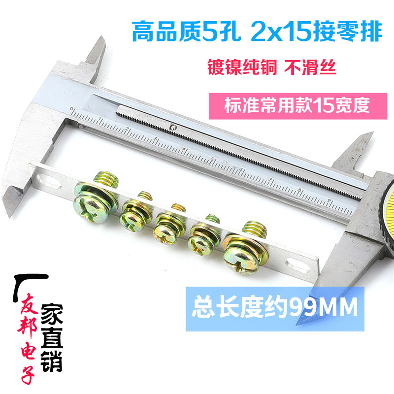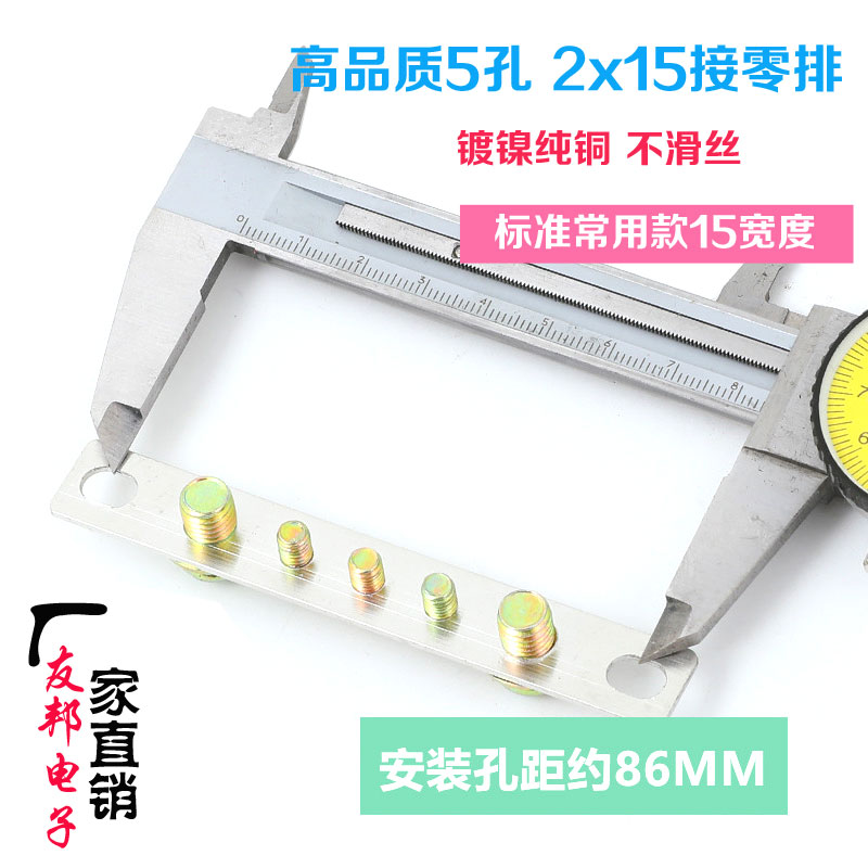 Factory direct sales 5-hole zero row 2*15 pure copper parts distribution cabinet box accessories 15 wide five-position zero-ground row non-slip teeth