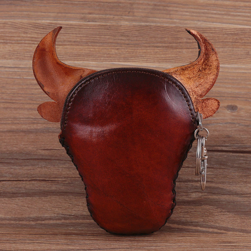 Handmade leather coin purse Ox characteristic waist pendant men's card bag small bag custom boy gift Zodiac Ox