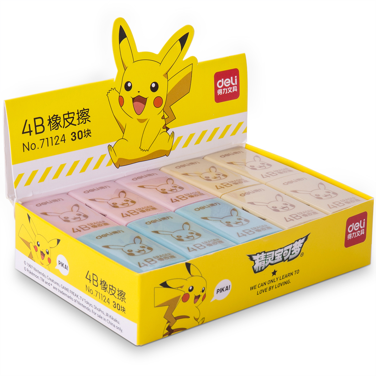 Able 71123 71124 Pikachu series eraser pencil wipe 30 block boxes Cartoon Rubber Full
