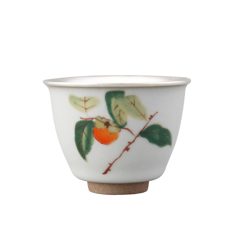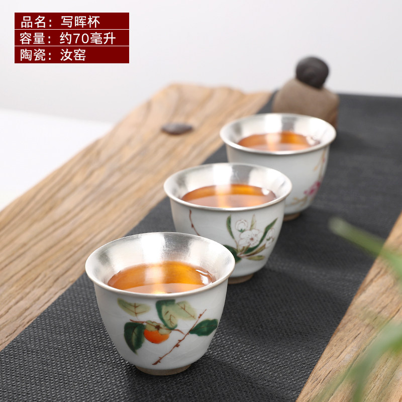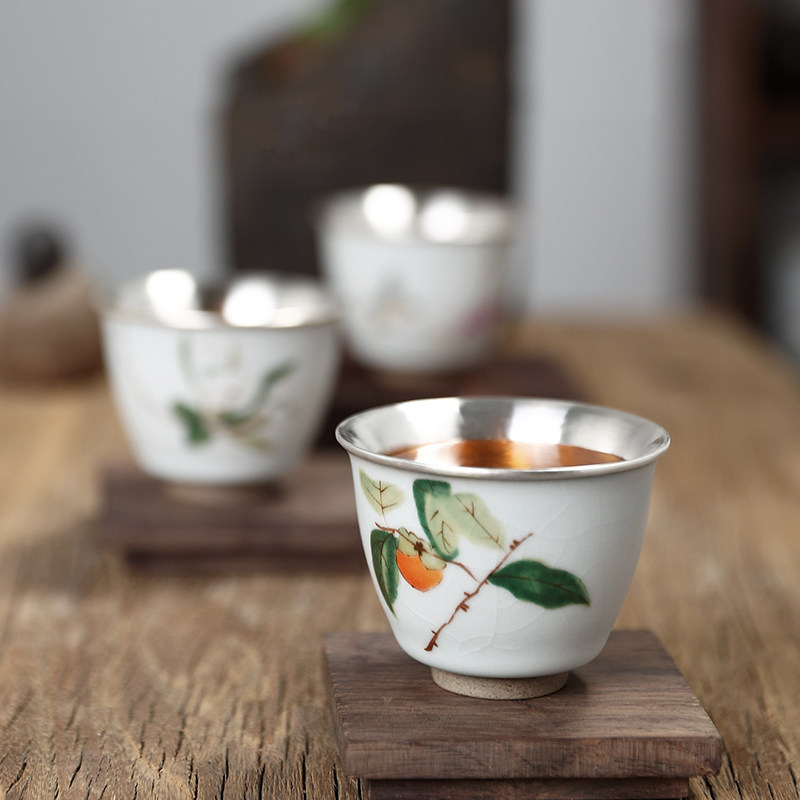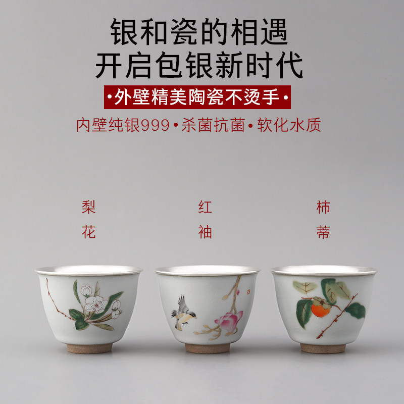 Sterling silver teacup sterling silver 999 silver cup kung fu tea cup tasting cup master cup small teacup porcelain bag silver cup Japanese