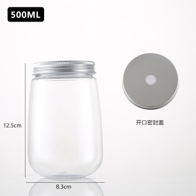 Net red dirty tea black sugar milk tea beverage bottle U-shaped disposable pet plastic packaging bottle big mouth juice bottle
