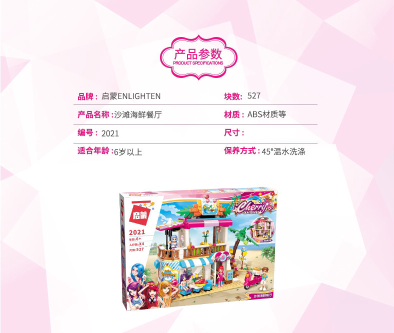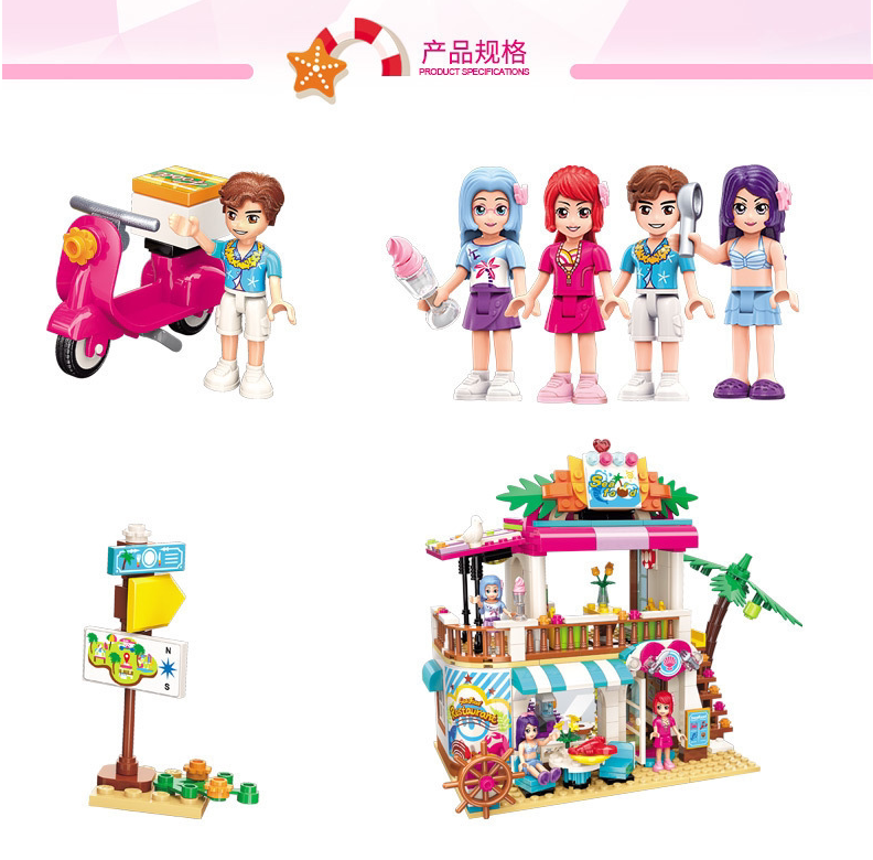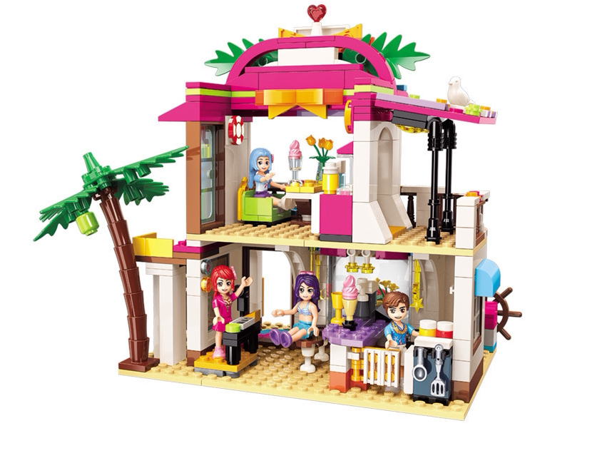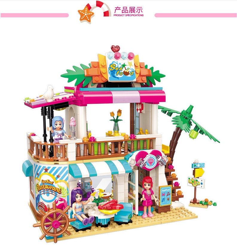 Lego Compatible Enlightenment 2021 Beach Seafood Dining Hall Assembly Girl Princess Building Blocks Puzzle Toy Birthday Present