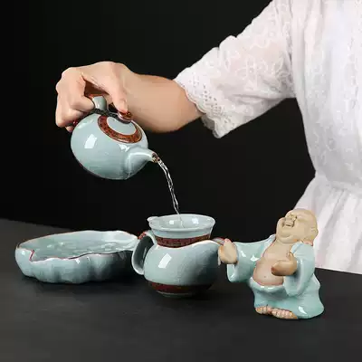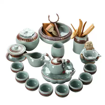 A complete set of household Brother Kiln Kung Fu tea sets, open pieces, Ru Kiln Celadon teacups, tea washing cover bowls, Zen tea, simple tea ceremony set