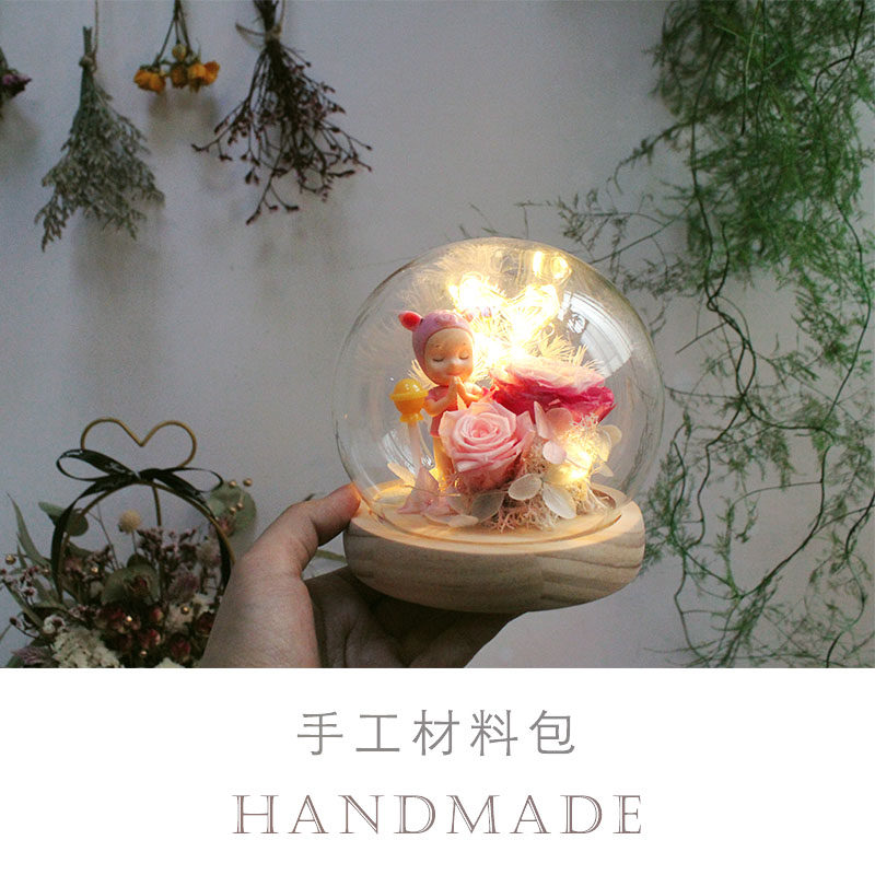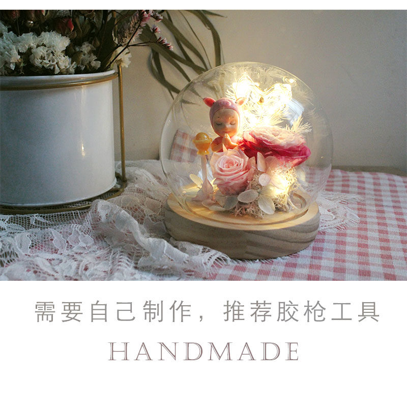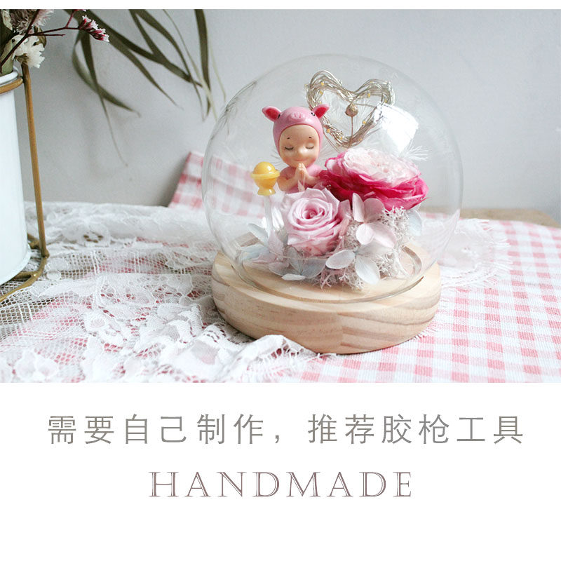 Cute wish pig forever flower DIY material package crystal ball glass lamp group building activities
