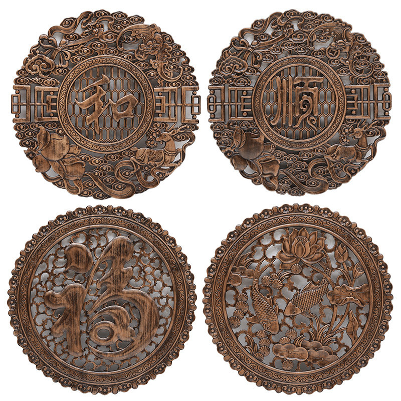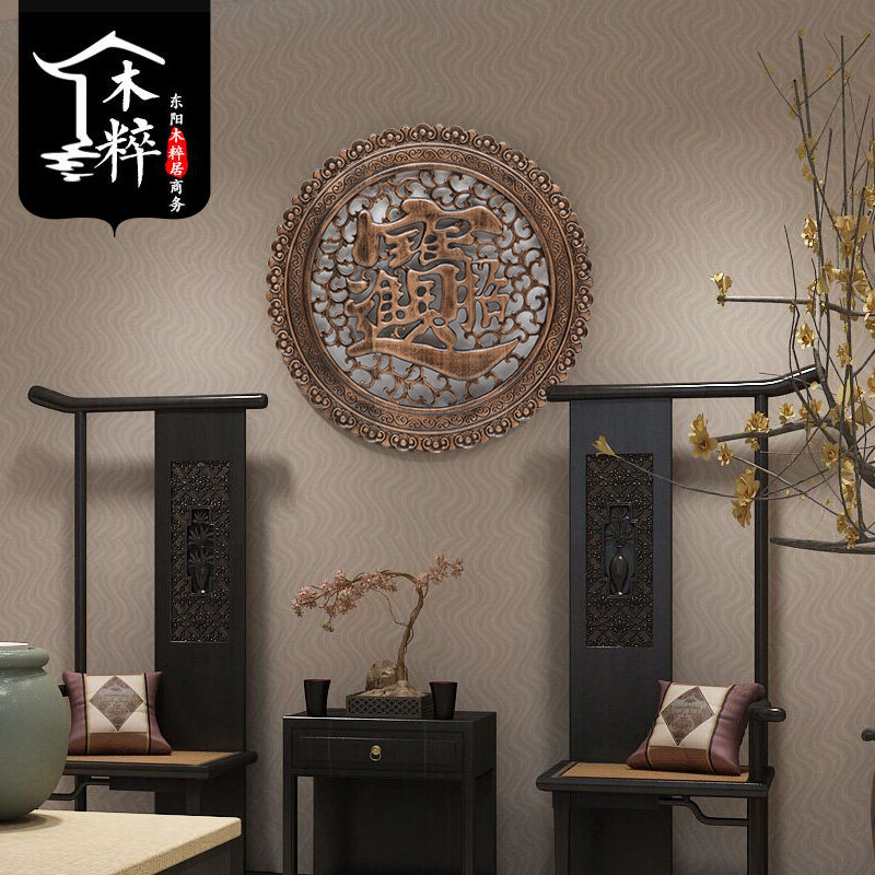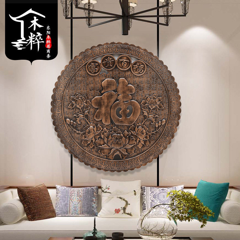 Dongyang wood carving pendant wall hanging antique round living room porch decorative painting Chinese style solid wood log ancient style hanging screen