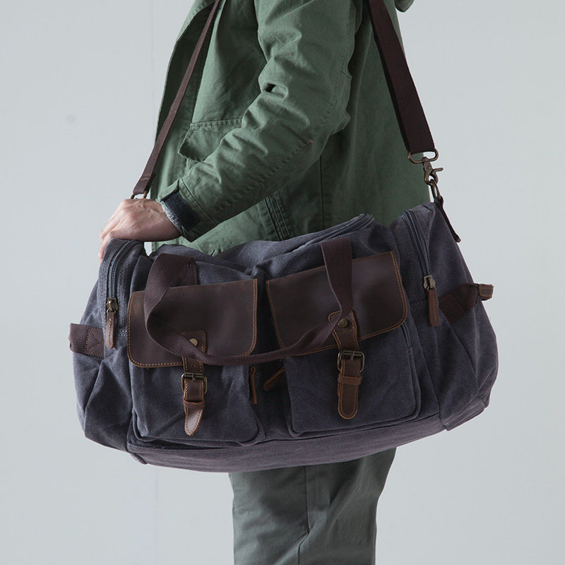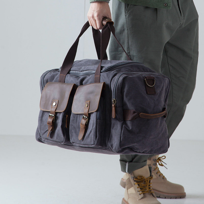 Korean version of men's handbag new fashion pure cotton canvas with cow leather fit mad mapboy bag large capacity leisure sheet-Taobao