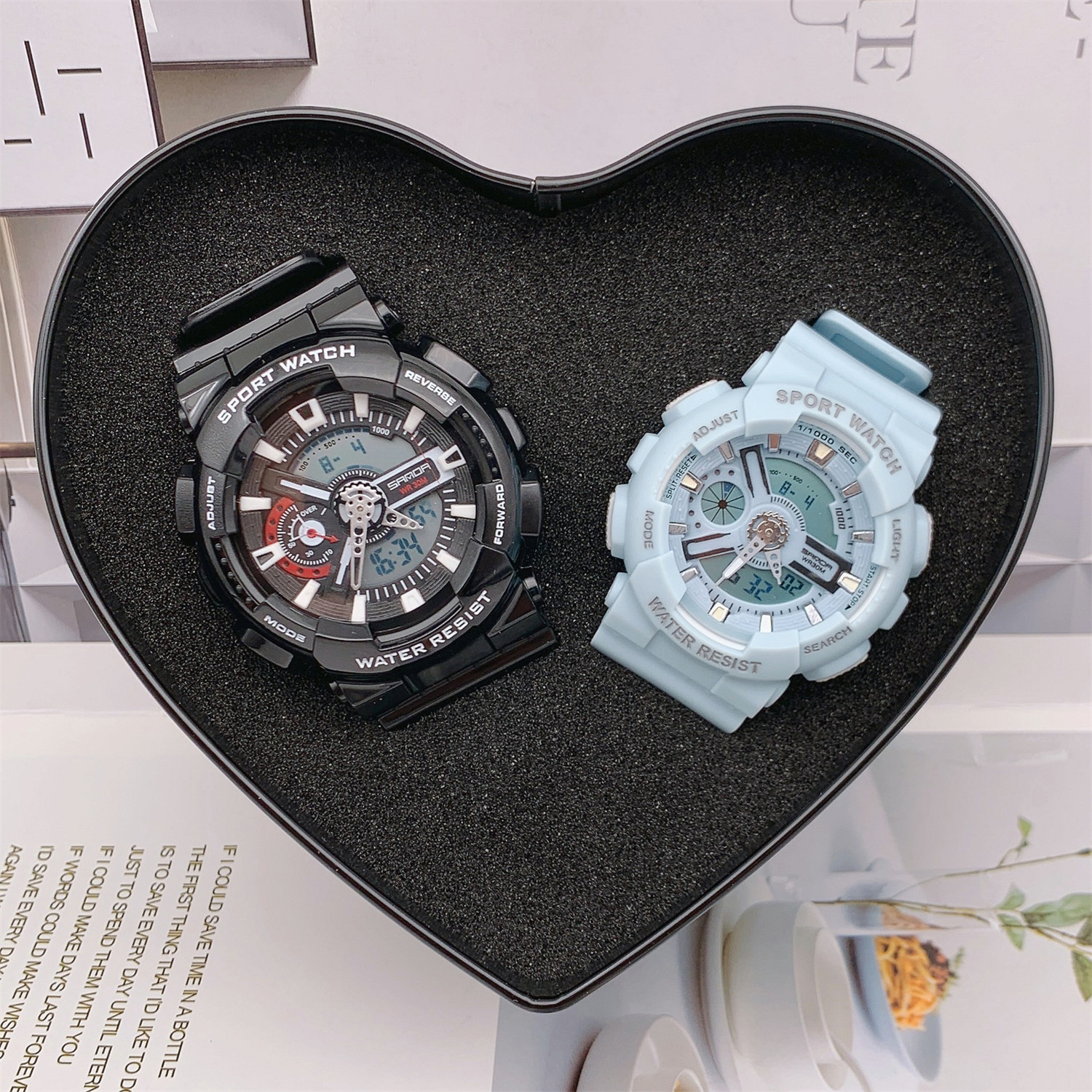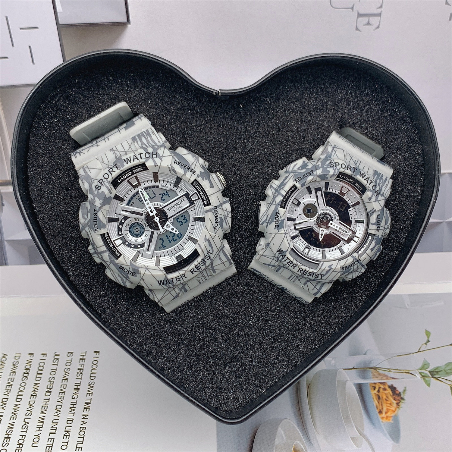Luminous alarm clock anti-magnetic 24 hours indicate GMT on both sides of the clock ticking timing week Show the month Show