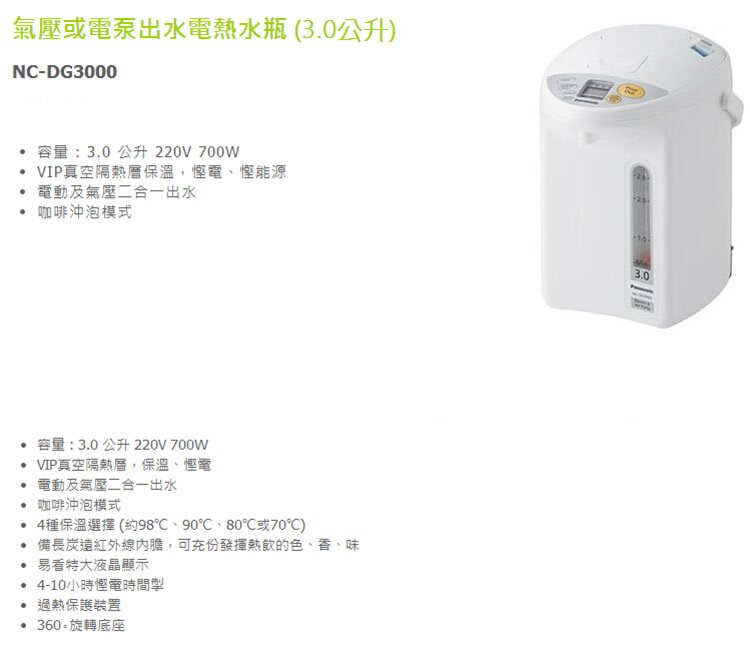 Panasonic Electric Water Bottle NC-EG4000 Hot Water NC-EG3000 Kettle NC-DG3000