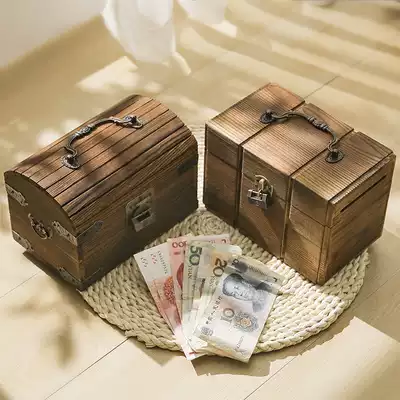 Solid wood with lock piggy bank retro treasure box Net red money deposit tube only can not enter Creative Adult Children's Gifts
