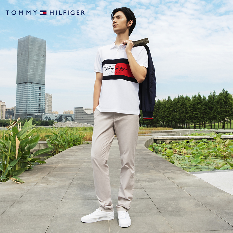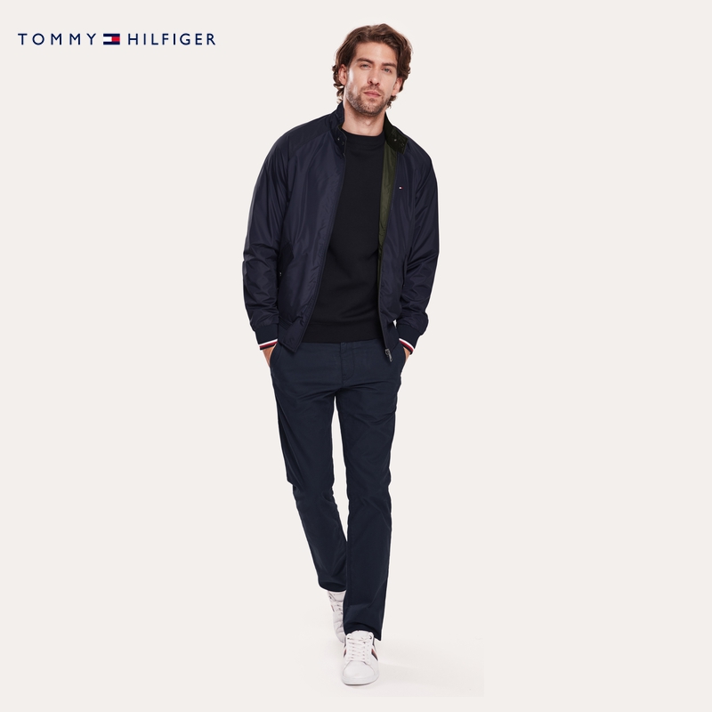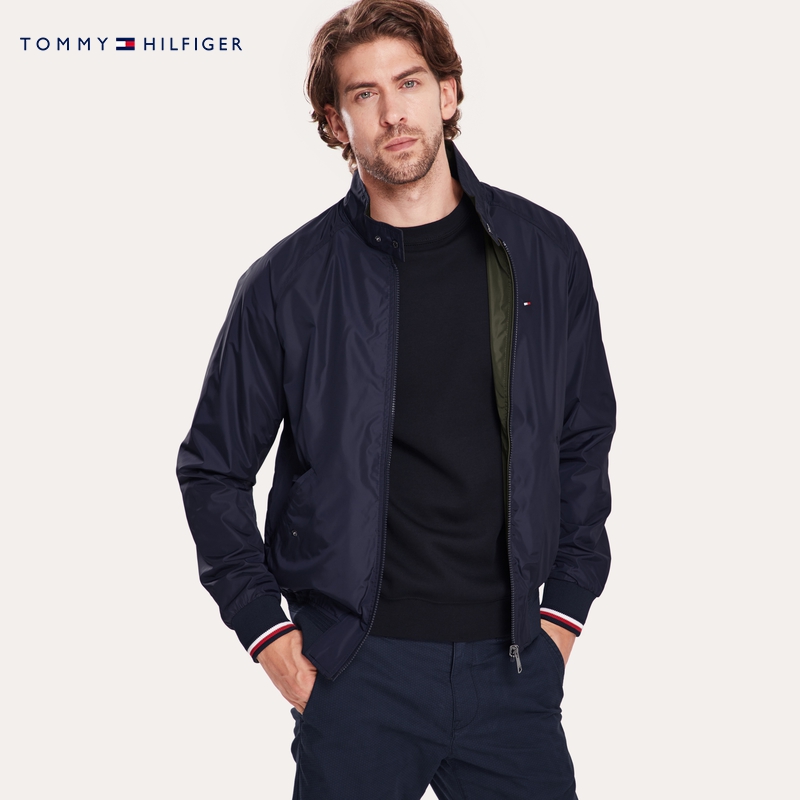 Tommy Men's Fashion Simple Embroidery Flag Solid Color Double Sided Stand Collar Single Jacket MW0MW10500