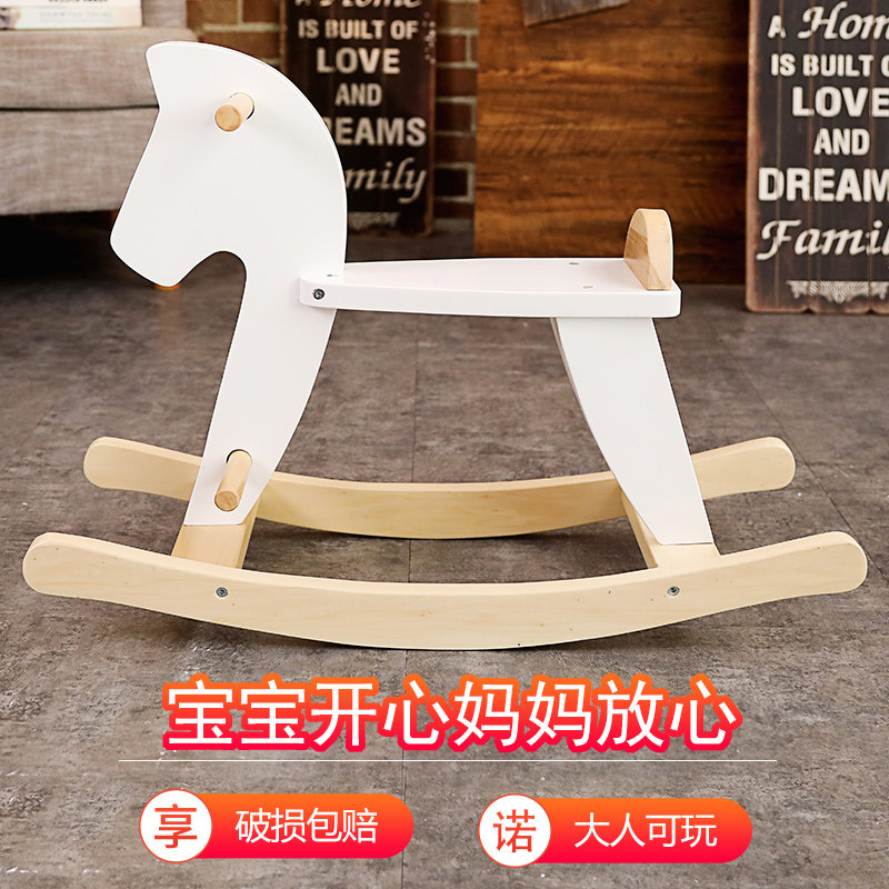 White solid wood rocking horse (delivered cotton cushion bearing 150 catty) Guochao wind pure solid wood rocking horse (send cotton cushion bearing 150 catty) pink solid wood rocking horse (send cotton cushion bearing 150 catty