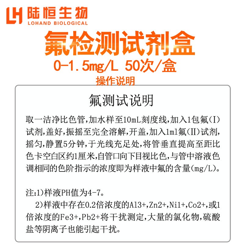 Lu Heng Fluoride Ion Detection Kit Industrial Waste Water Well Water Aquaculture Fluoride Concentration Rapid Determination Test Paper