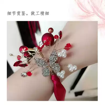 Exquisite crystal butterfly hand flower Chinese classical matching Xiuhe clothing toast bridal bridesmaid girlfriends group wrist flower