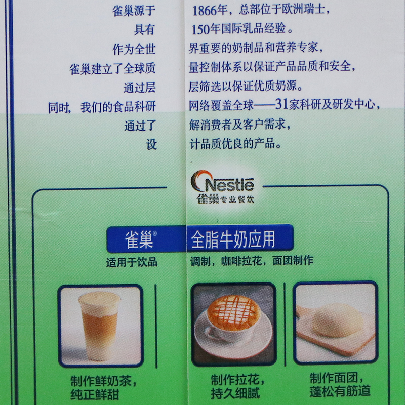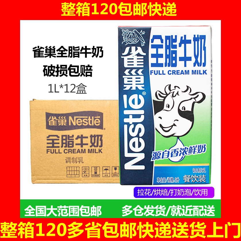 Nestle Whole milk Milk Whole Tank 1L* 12 Box Home Milk Bubble Baking Pure Milk Coffee Milk Tea Special Raw Material