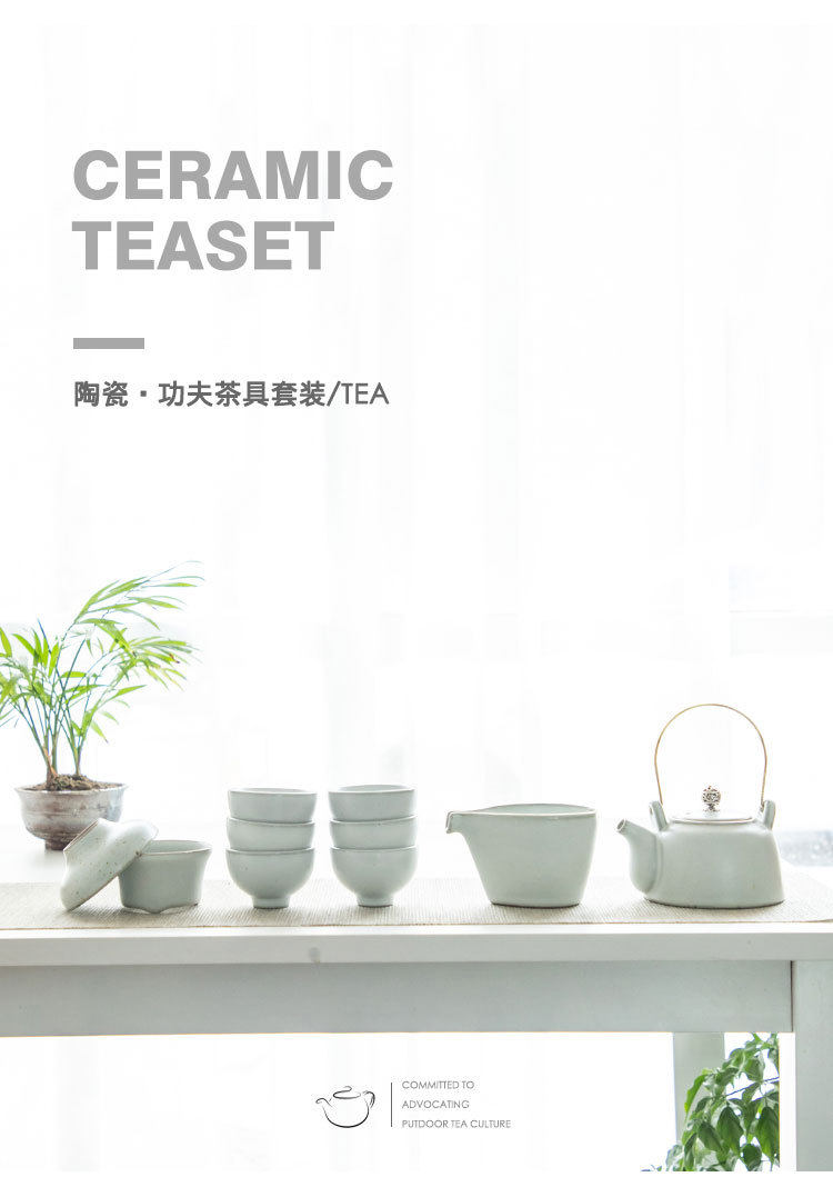 Household modern 10-head Japanese-style tea set simple Kung Fu complete set teapot lifting beam pot cover bowl teacup teapot