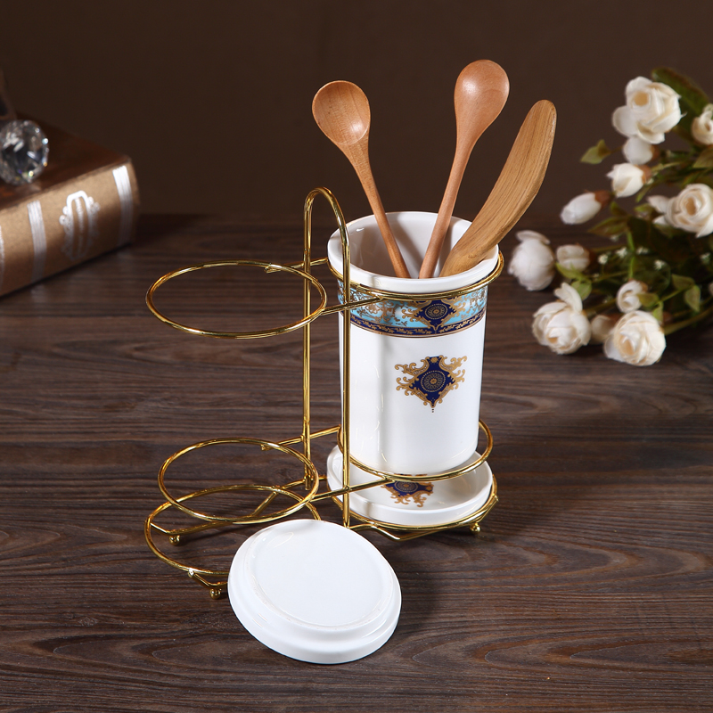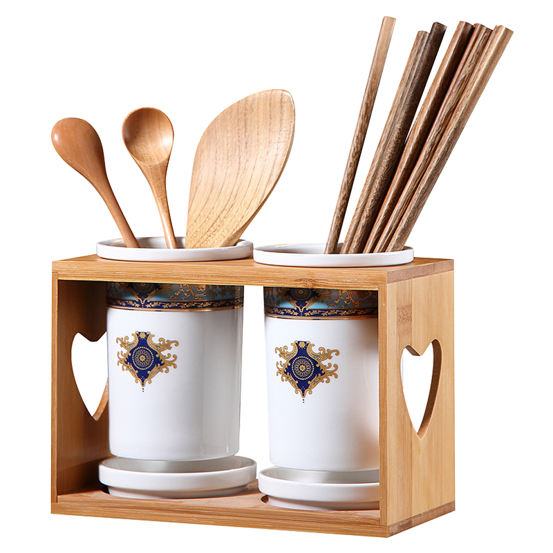 European Creative Ceramic Chopsticks Carrier Asphalt Kitchen Household Multi-function Knife Frame Anti-Mold Tri-Link Bamboo Frame
