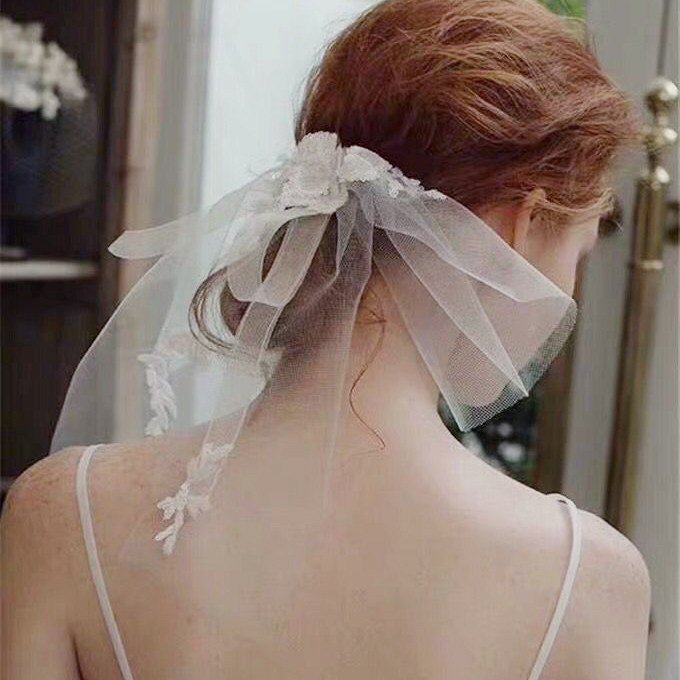 White bright sheet lace flower bridal small head yarn wedding dress gown accessories Write a real brigade patina photo gallery styled short headwear