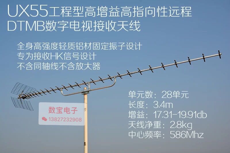 Engineering Class Remote eight-wood fish bone antenna UX55DTMB Ground wave HD Digital 3 m 3 Hong Kong Domestic hot pin
