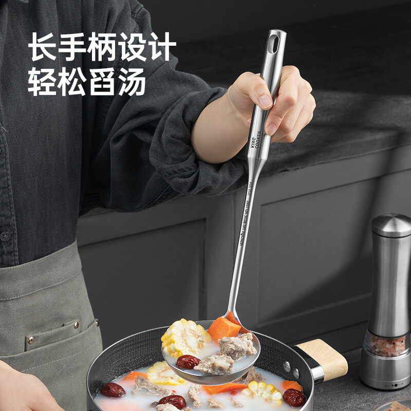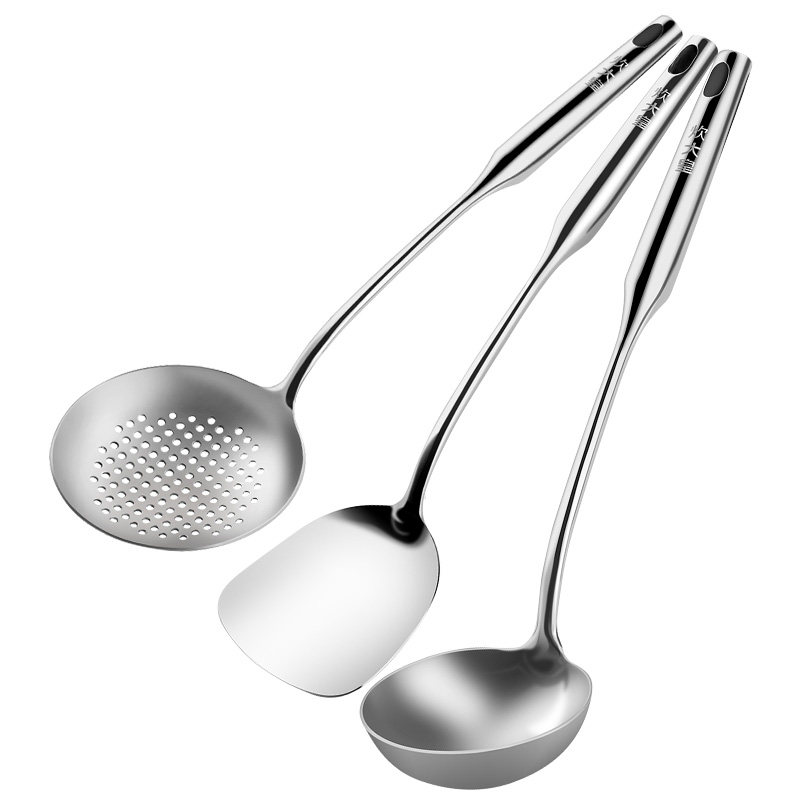 Cooking Grand Emperor 304 Stainless Steel Pan Shovel Home Kitchen Single Leaking Spoon Suit Spoon Long Handle Thickened Saute Scoop