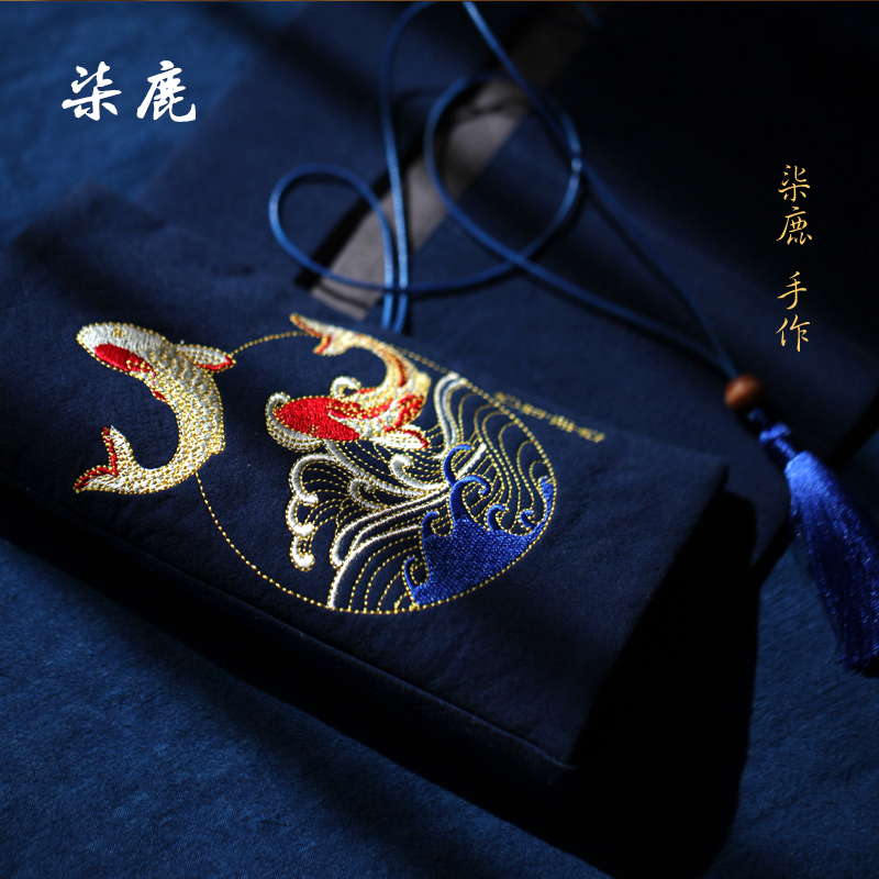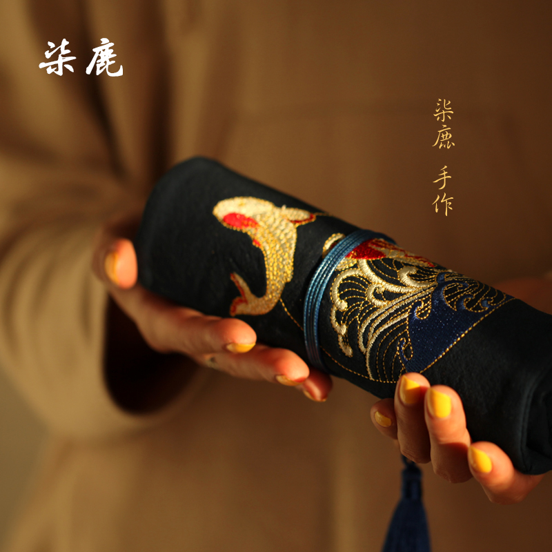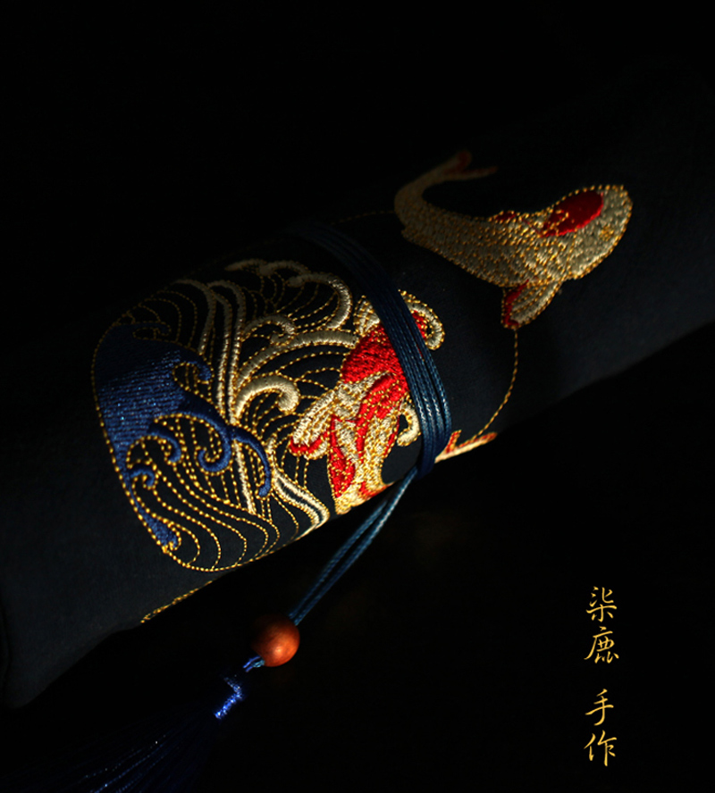 Lacquer Deer Original -- Auspicious Brocade Carp Embroidered Pen Curtain Volume Pen Bag Large Capacity Fountain Pen Stationery Bag for male and female send teacher's graduation gift for male and female friends birthday present