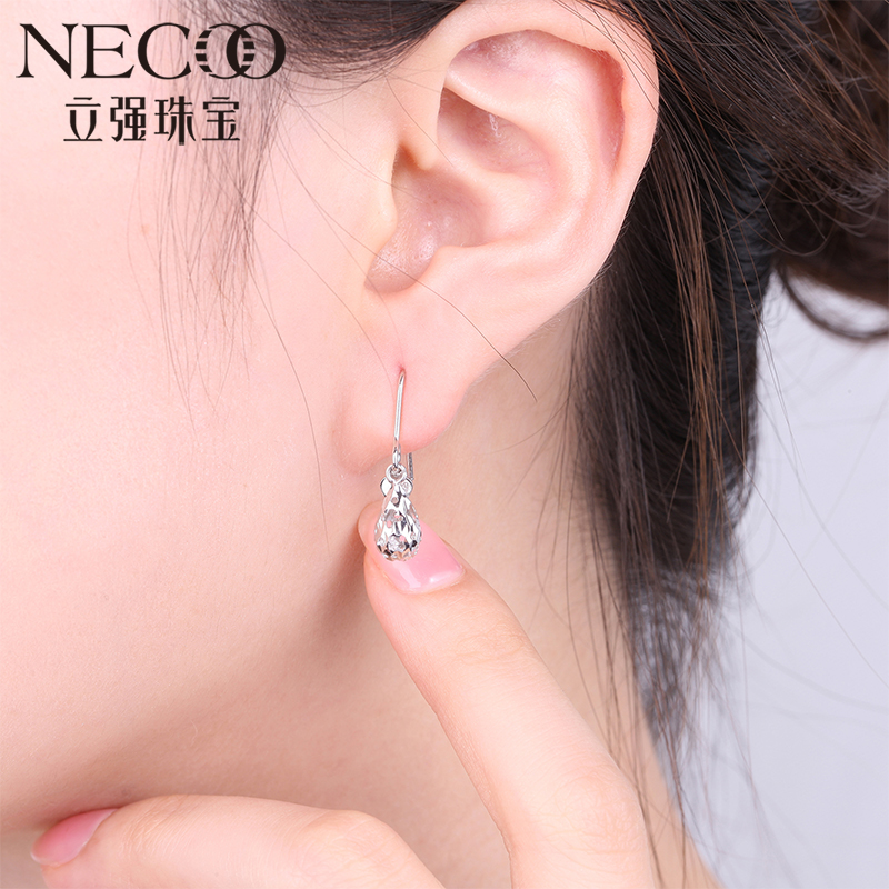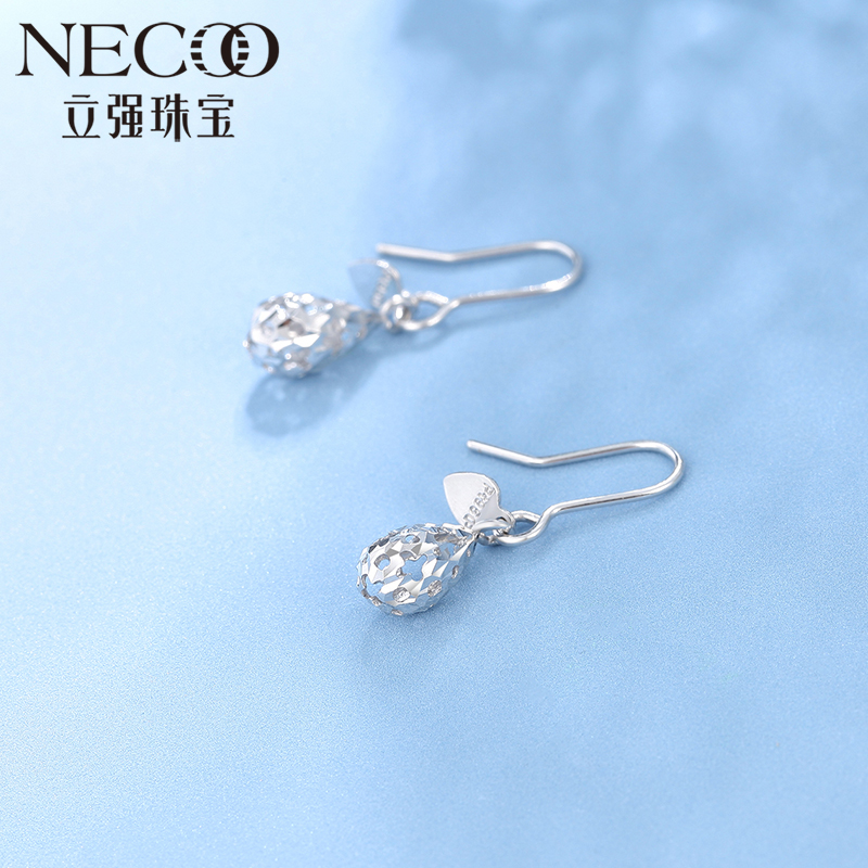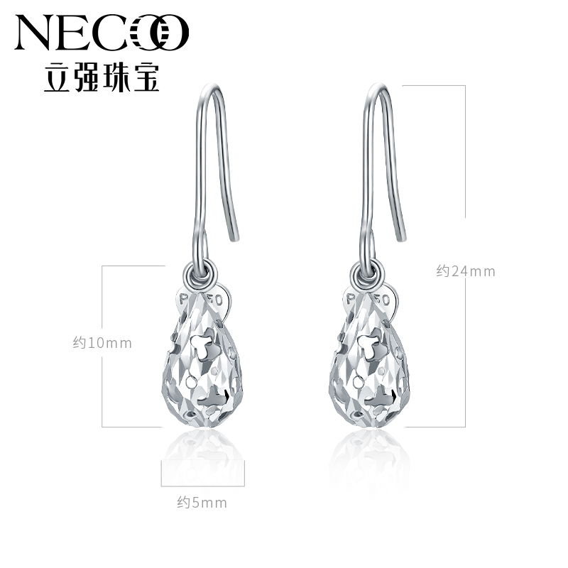 Liqiang jewelry platinum earrings female fashion hollow water drop platinum earrings female