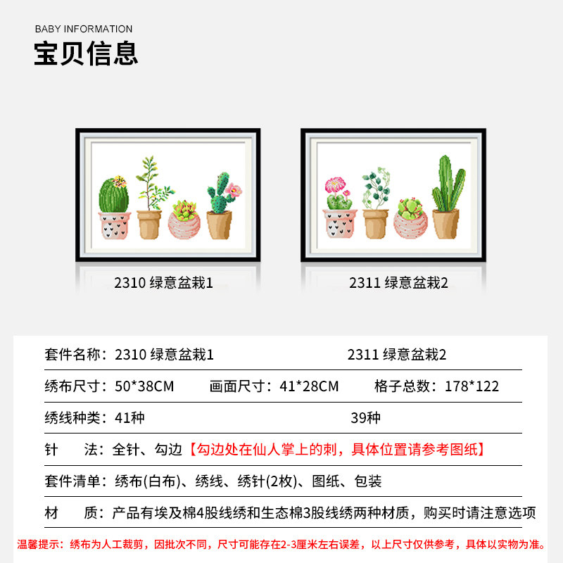Cross embroidered 2022 new line embroidered fresh and green planted living room dining room dining room Own Embroidered small pieces handmade simple