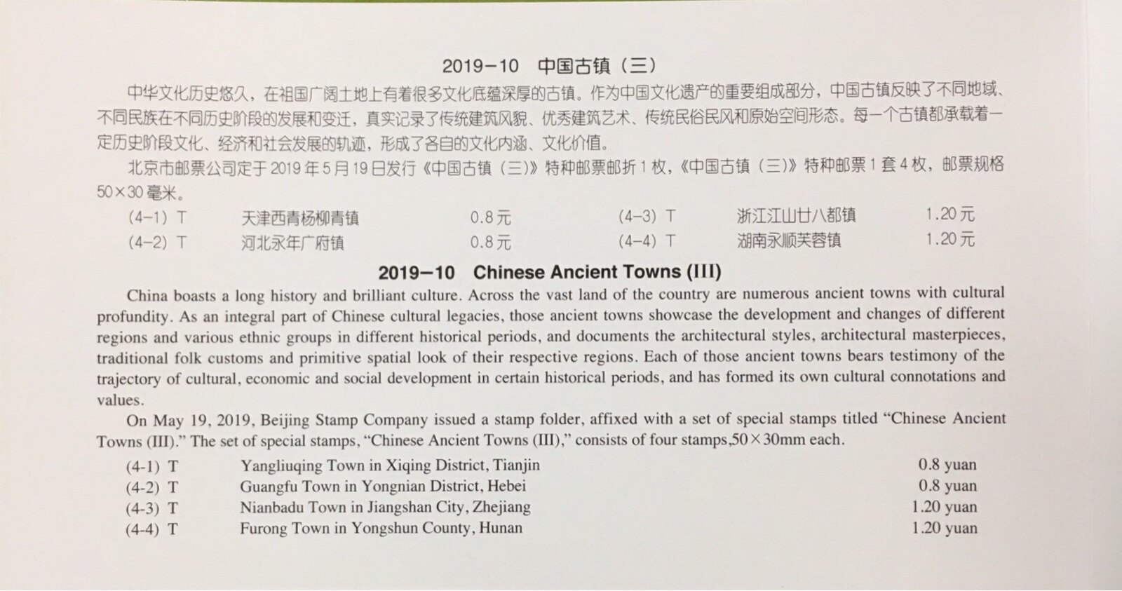 2019-10 China Guzhen (III) Special Stamp Beijing Company Post Fold