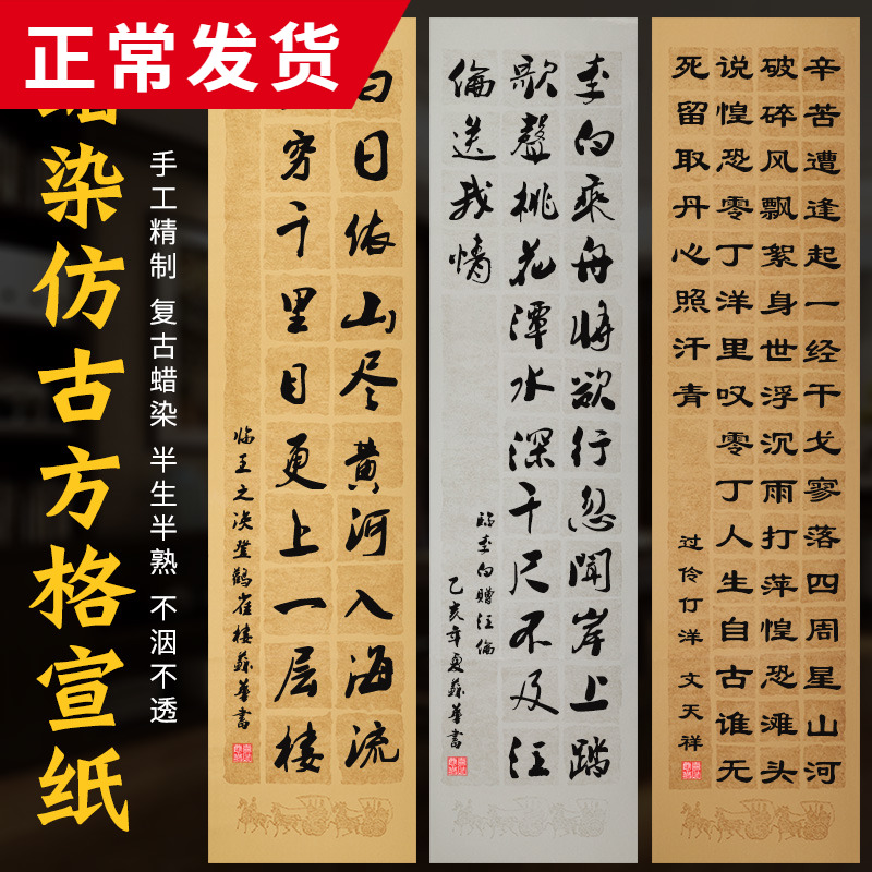 Brush calligraphy works paper panes Calligraphy paper Four feet folio Xuan paper 20 Gg 28 g 56 g half raw cooked Competition Creative plaid batik imitation ancient tug Kai national exhibition works paper