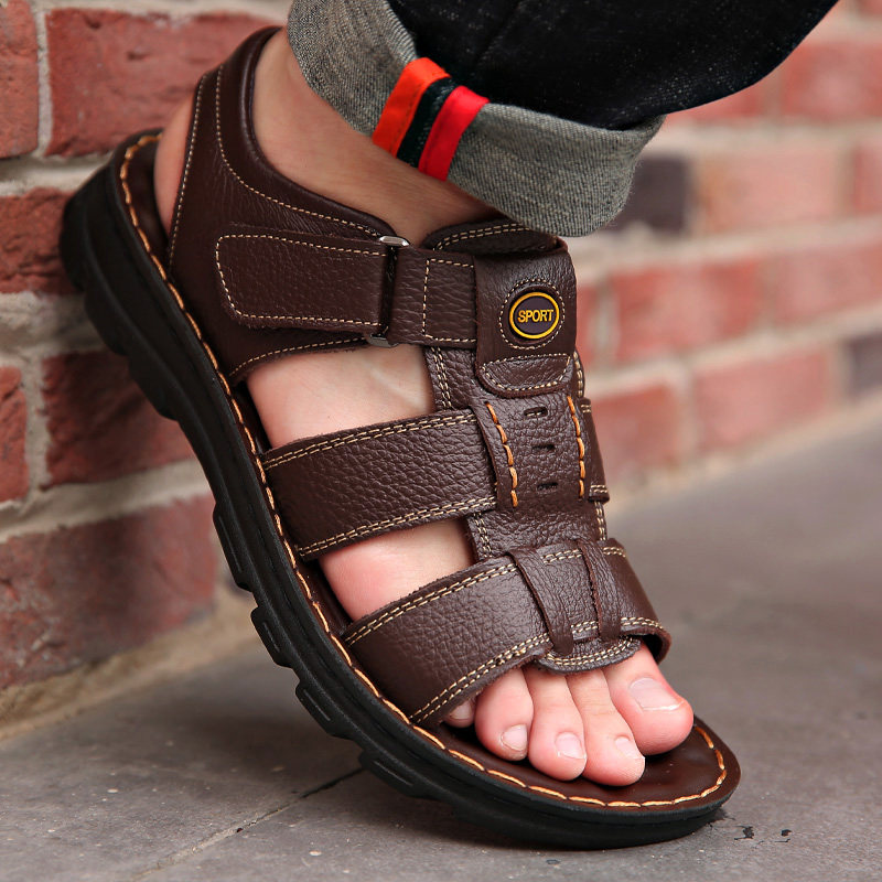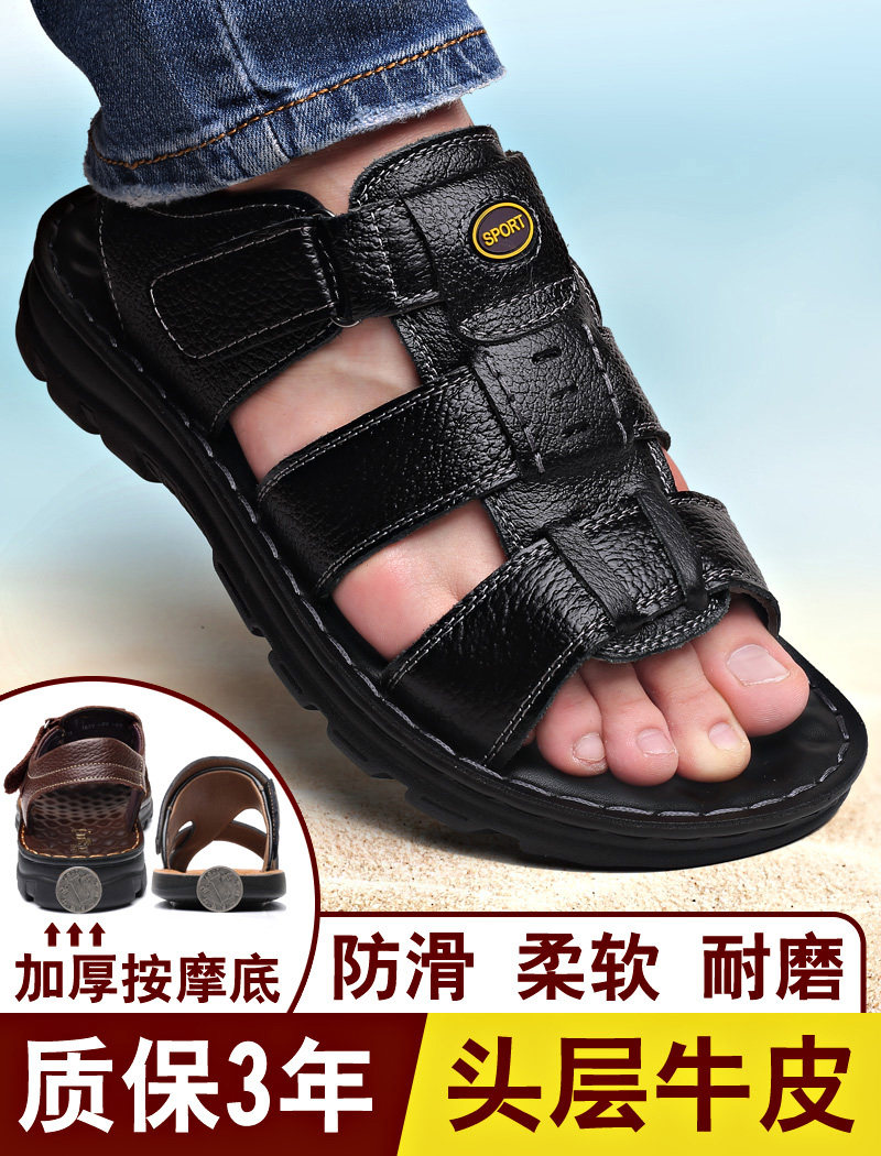 Sandals Men's Summer Genuine Leather Casual Beach Shoes Men's Non-slip 2022 New Dad External Wear sandals