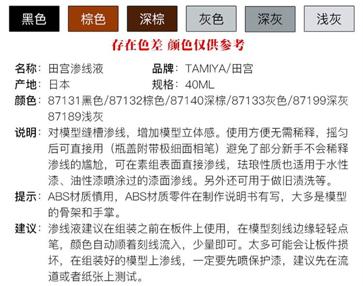 Tianmu 87131 - 87210 model making leakage fluid 40ML stain washing liquid highlights the details