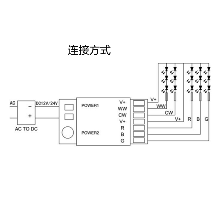 LED light strip dimming discoloration controller 6P Five-in-one seven-color double color temperature lamp with RGBCCT white light warm white 12V