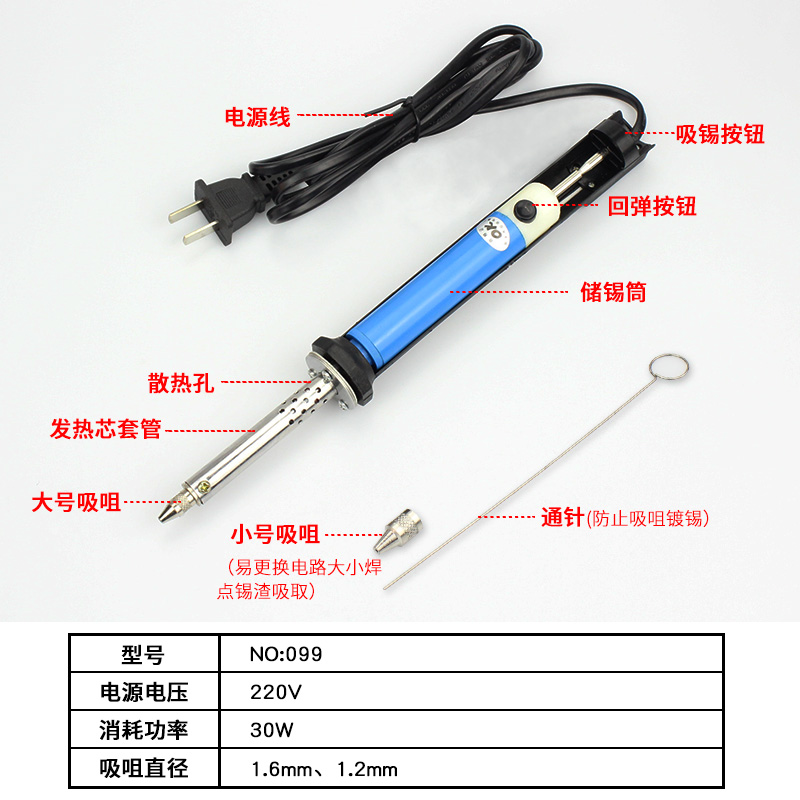 099 electric heating tin suction machine for two inserts 099 electric heat suction machine European gauge round plug 099 electric heating tin suction machine British gauge three-plug