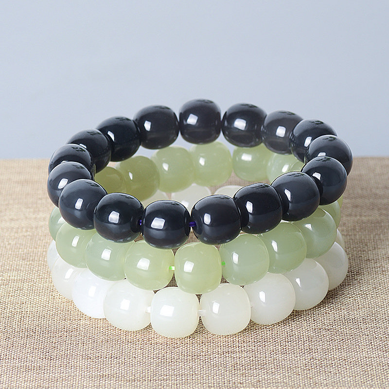 Goat Grease Jade Old Type Beads Bracelet 10 * 12mm White Jade Old Type Beads Bracelet 10 * 12mm Smoke Purple Old Bead Bracelet 10 * 12mm Oil Cyan Old Type Beads Bracelet 10 * 12