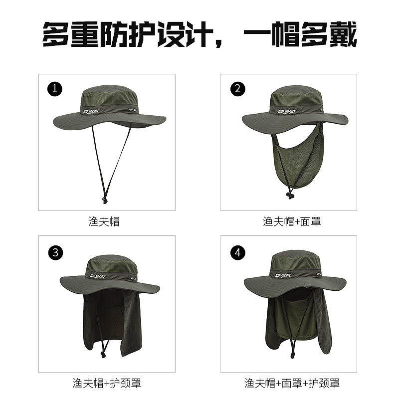 Hengyuanxiang sun visor sun visor large brim fishing fishing fisherman hat Male face cover anti-UV mountaineering hat