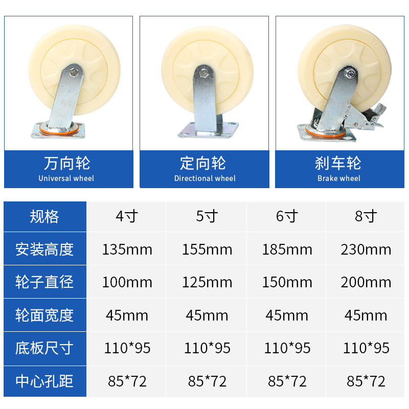 4-inch steering wheel 4-inch brake wheel 4-inch brake wheel 5-inch steering wheel 5-inch brake wheel 6-inch steering wheel 6-inch steering wheel 6-inch brake wheel 8-inch directional wheel