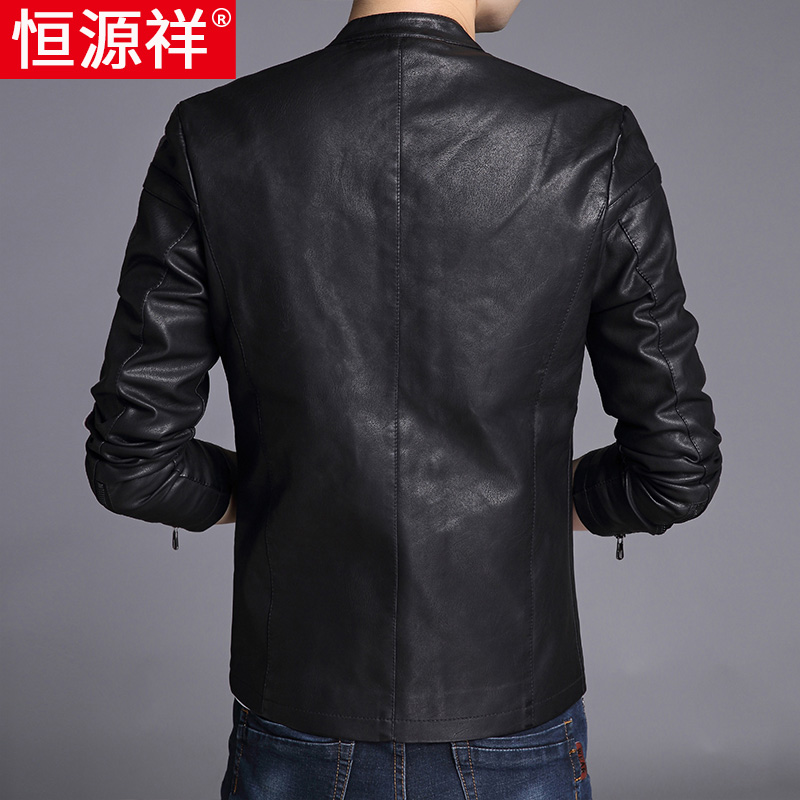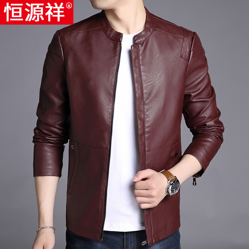 Hengyuan Xiang Men's leather clothes Han version Trend Upright Collar Leather Jacket Man Mid Youth Thin style Casual Autumn Clothing Jacket