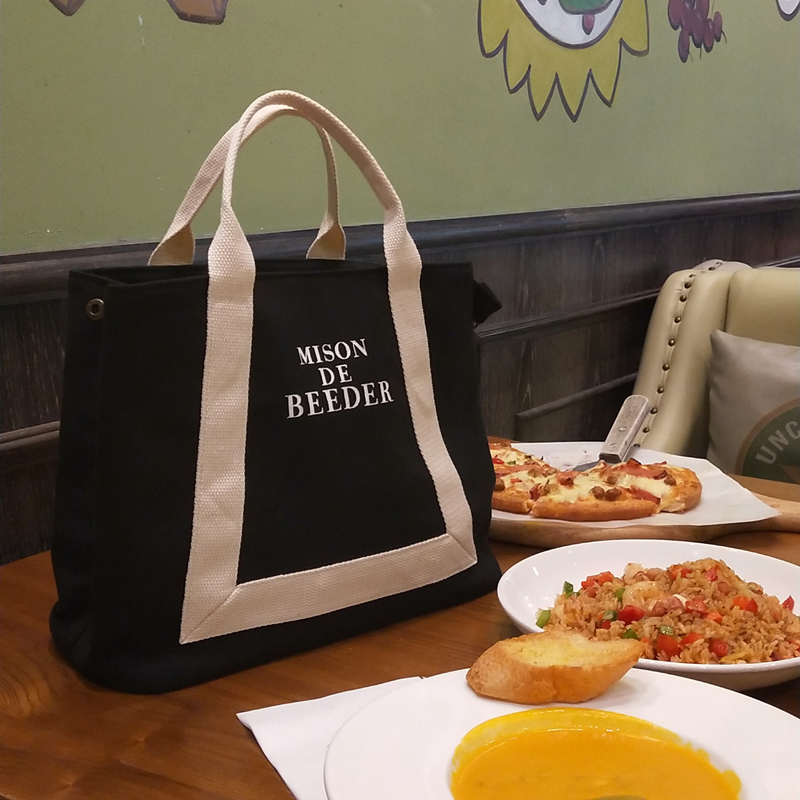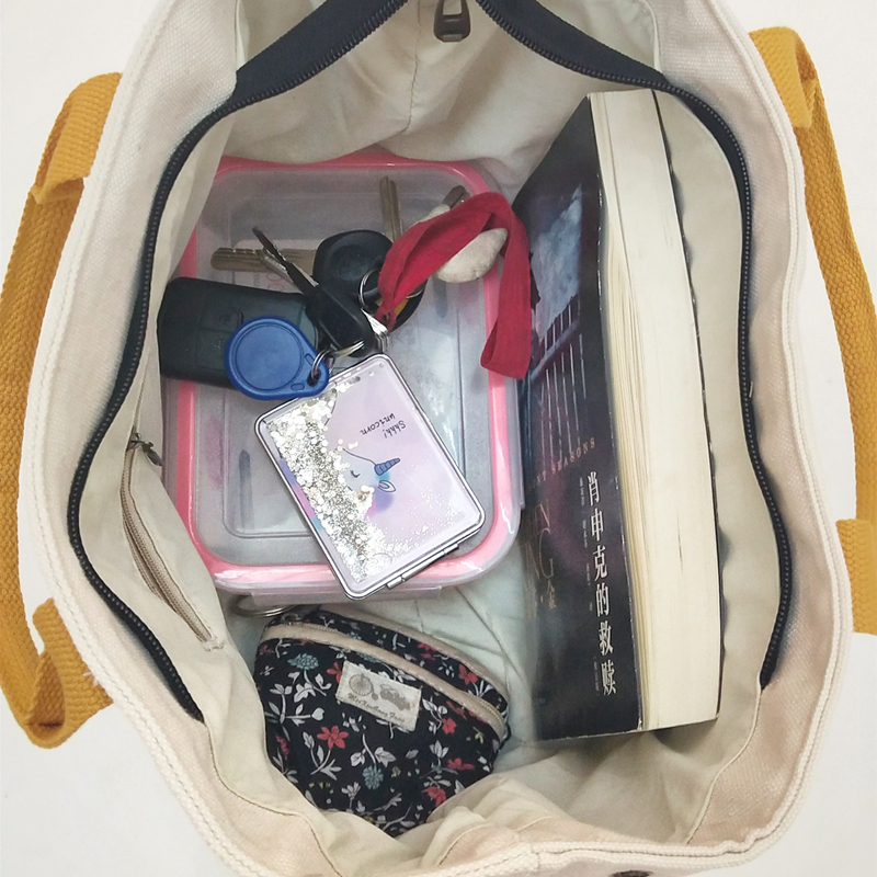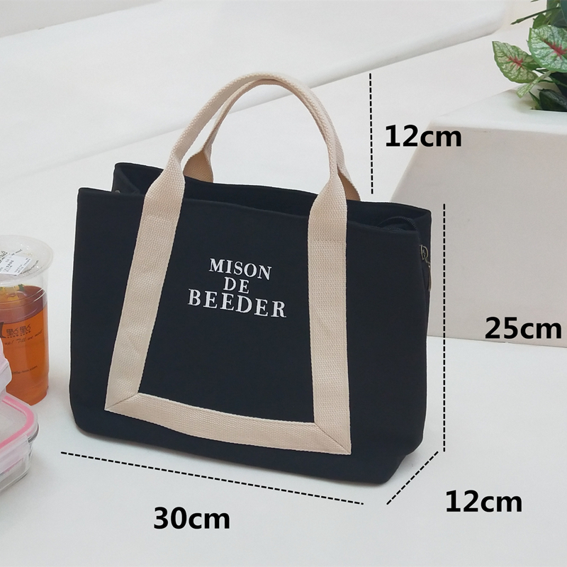 Bento with lunch bag Japanese Korean version of fresh and casual large capacity tote bag canvas hand bag Contrast fabric