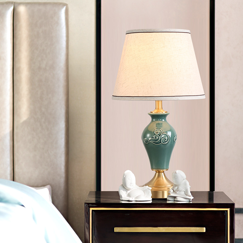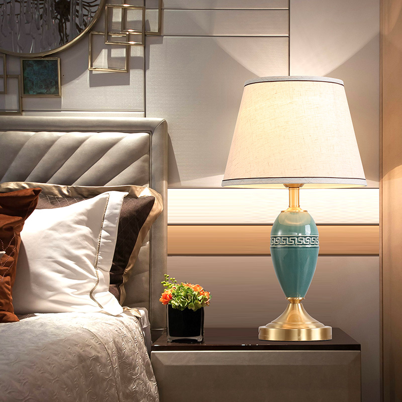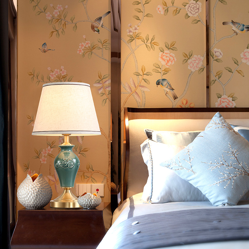 Full copper ceramic table light LED Bedroom bed head lamp New Chinese style modern minimalist ice Rift living room Book room lamp